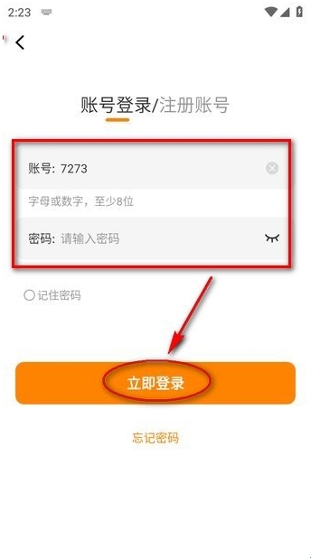 老用户的话直接输入账号和密码,点击“立即登录”就可以了;