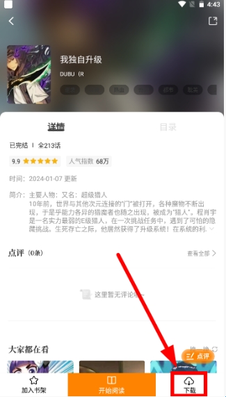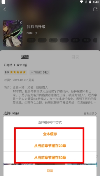 我们找到想看的漫画之后,点击进入漫画详情,底下右侧就能点击下载缓存。