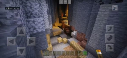 这个地图出生点附近有一个垂直的矿洞,很适合玩生存的时候去开矿,里面岔路很多,一定要记得路(图片左上角有坐标)