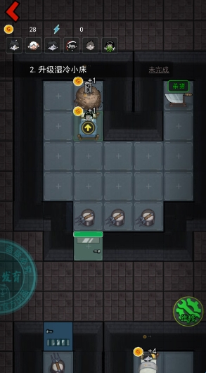 4.开局先升级门,然后建造炮台,其次升级床铺,床铺的等级决定你游戏的成败