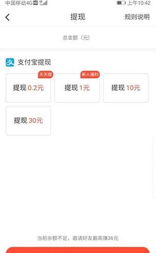 绑定支付方式以后,我们选择合适的提现金额提现。