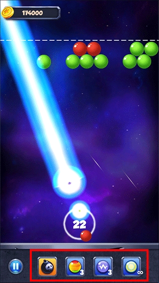 【炸弹】发射出一枚炸弹,消除一定范围的全部小球;
