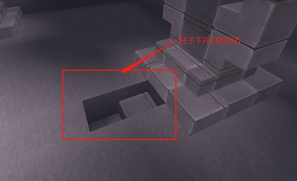 3、我们落地之后最好第一时间寻找遗迹上的宝藏,一般藏在柱子的下面,可以看到开口的地方: