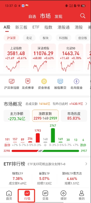 1、行情查看:提供股票、基金、期货等多市场实时行情,支持自定义指标和k线分析。