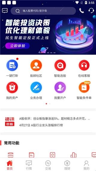 民生证券app也叫做民生财富汇app,是一款非常好用的理财投资类工具软件,这款软件可以帮助用户了解和掌握更多的股票行情和投资资讯,在一定的范围内帮助用户降低投资风险,带给用户更舒适的理财体验。软件包含了普通交易、融资融券、全国股转、债券逆回购等多种业务,满足用户多样化的使用需求,欢迎下载体验。