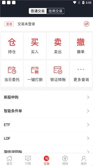 9、全面的交易功能,覆盖普通交易、融资融券、港股通、全国股转、场内外基金、债券逆回购、银行理财/OTC等。