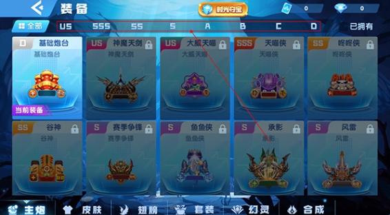 1、游戏内一共有A、B、C、D、S、SS、SSS、US八种炮台级别类型,从低到高依次排序,级别越高伤害越高。