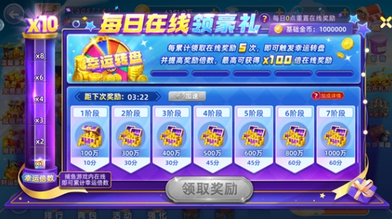 6、捕捉特定鱼类进行金币抽奖:在游戏中,捕捉到规定的奖金鱼或BOSS级别的目标时,可以进行金币抽奖,有机会获得更多金币。