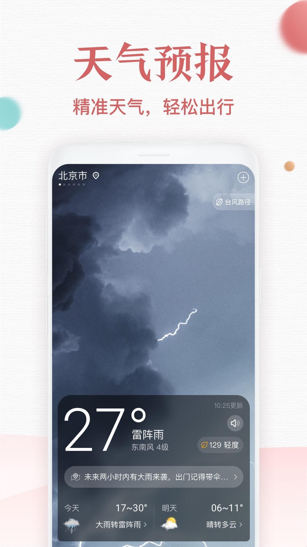 3、天气预告:对接中国天气网,获取实时准确天气信息,未来两天预告内容。