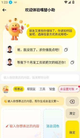 2、嘴替小助还特别适合在轻松的氛围中使用,让交流变得更加顺畅,确保沟通的顺利进行,甚至让对方对你一见钟情。