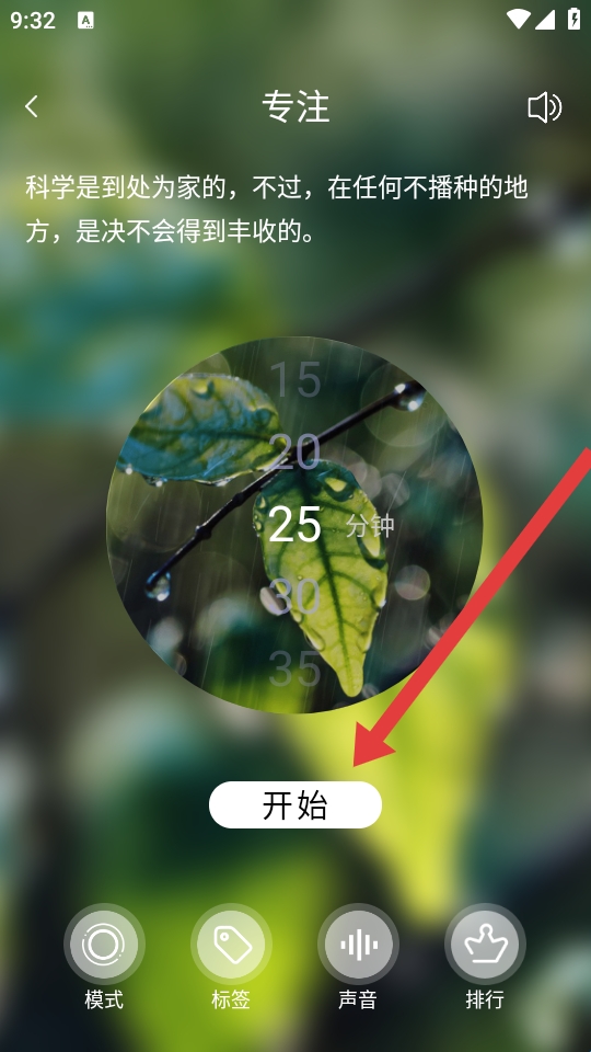 3、在专注时长设置的界面,需要点击开始,来进行启动专注计时。