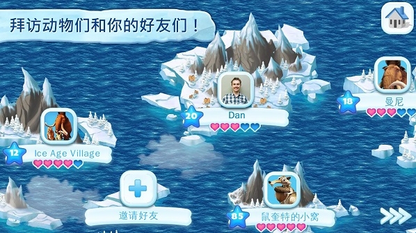 冰川时代村庄这是一款根据动画电影冰河世纪改编而来的经营游戏。玩家需要在这一块冰川世界中搭建一个又一个建筑,打造一个独属于你自己的冰川王国。游戏中还搭配了超多关卡,畅玩各种小游戏。感兴趣的小伙伴快来下载体验一下吧!