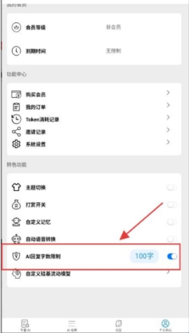 1、在个人中心里点击ai回复字数限制。