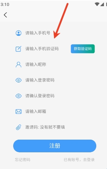 1、打开app,新用户们需要先点击“去注册”
