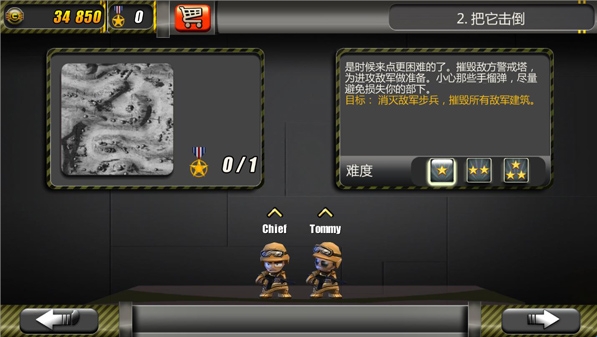目标:消灭敌人的步兵并将所有的敌军建筑毁灭,然后到达安全撤离地点。