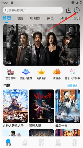 1、首页可以看到顶部菜单栏中有详细的影视分类,动漫、电视剧以及综艺、少儿等,可以根据分类查找影视。