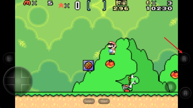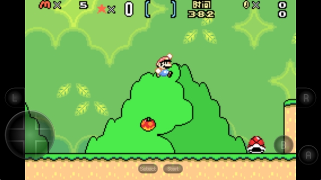 2、左侧的摇杆控制移动,右侧A键进行跳跃,拾取蘑菇之后点击B键即可射击。