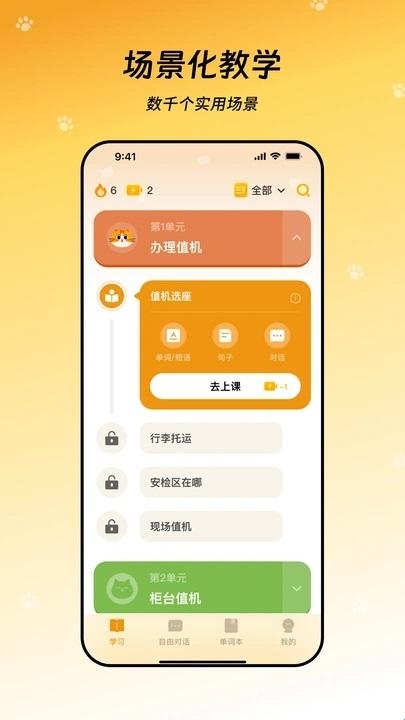3、拟真实场景对话,有值机选座场景,可进行英语对话练习,提升口语应用能力。