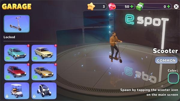 4、点击右上角的手机,然后点击汽车标志可以进入车库,你可以购买属于自己的车辆。