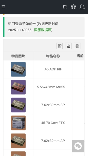 可以查询热门子弹排行榜前十。