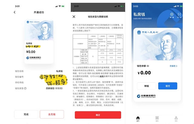 通过应用商店就可下载数字人民币App,新用户注册过程中,无需输入姓名、身份证号、银行卡号等个人信息,仅通过手机号、设置密码、同意相关协议,就可以直接开通匿名钱包,整个过程流畅迅速,数秒内可完成,开通后可按需要升级为实名钱包。钱包设置了四类账户,一类账户什么都不限制,其他三类账户都有限制交易金额。