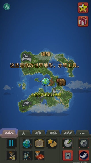 4、编辑按钮:修改世界地形,水等工具;