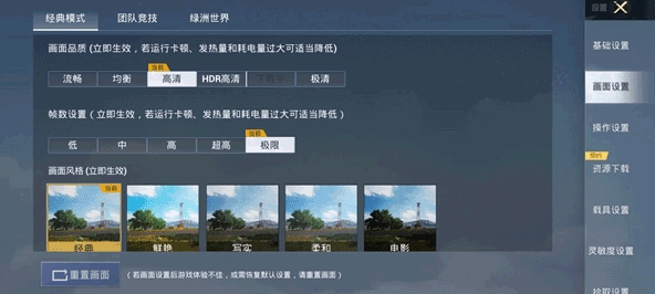4、这里可以将画质提高到极致,也可将帧率调高到120帧。