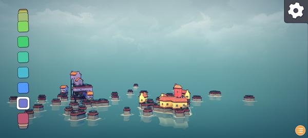 2、点击右上角齿轮按钮打开设置,点击新建,玩家可在水面上建造房屋;