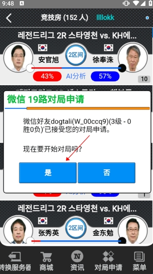 点击后会自动登录弈城围棋App,再点击接受按钮