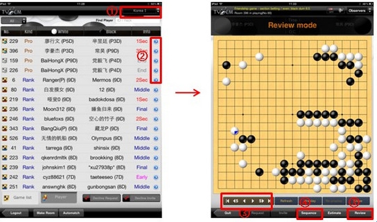 4、观看每天更新的国内外职业棋赛的棋谱。