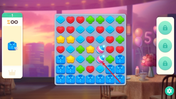 1、游戏分为两个部分,首先我们需要通过三消玩法进行闯关。