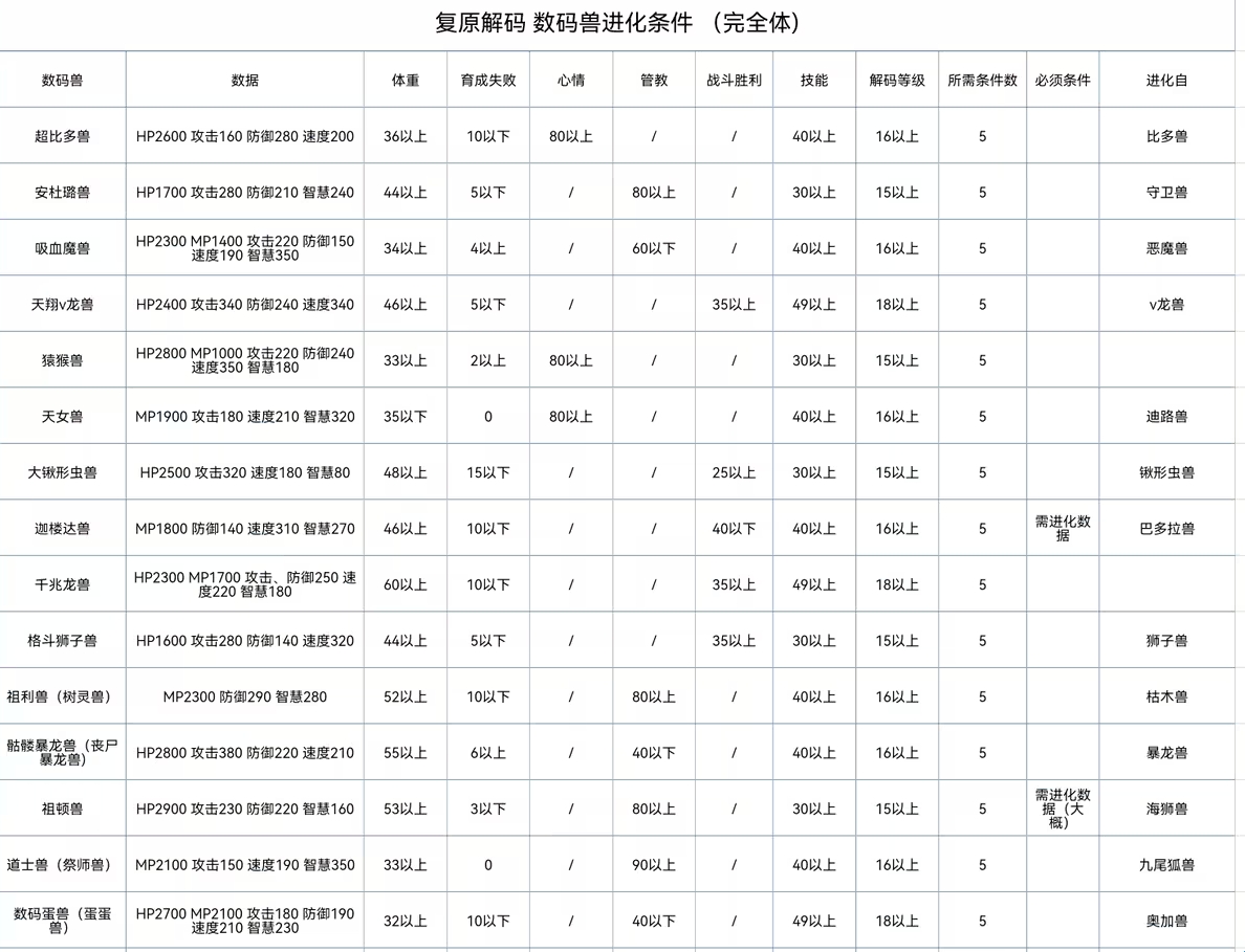 数码宝贝世界复原进化条件