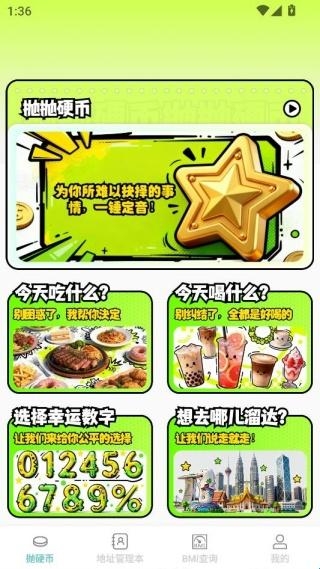 2、打开app即呈现生活决策、地址管理、健康计算三大核心功能区,所需服务一目了然。