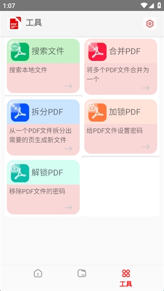4、支持搜索文件,合并、拆分PDF,还可以加锁解锁PDF文档。