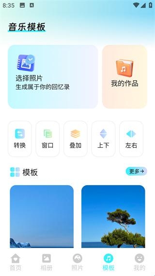 4、在模板页面中可以选择照片生成属于你的回忆录,有多种类别,还有精彩的音乐模板。