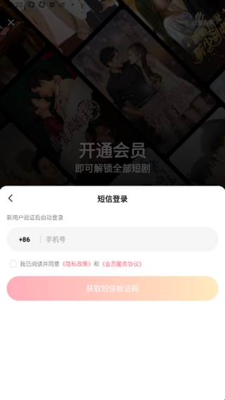 2、来到软件登录页面,输入手机号、填写验证码点击登录即可进入首页。