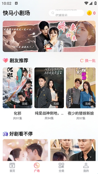 3、来到软件广场页面,可查看剧友推荐、好剧看不停等功能。
