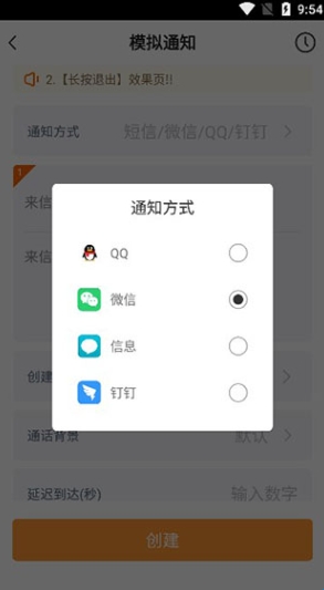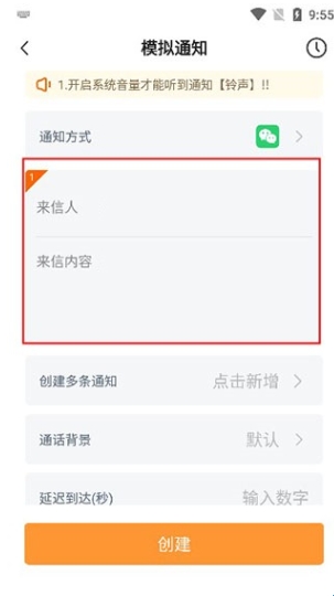 4、填写来信人信息,来信内容、延迟时间、通话背景