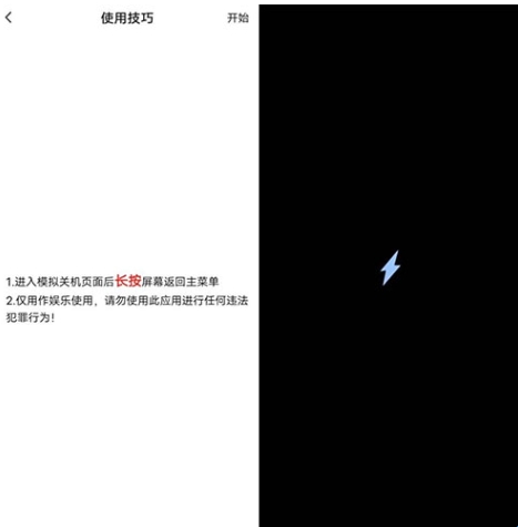 这个功能非常简单,就是点击开始即可模拟关机页面,长按屏幕回到主菜单。
