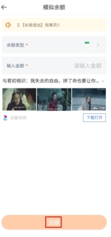 2、可以在这里设置余额类型和金额,点击创建按钮,这样设置起来就跟真的一模一样。