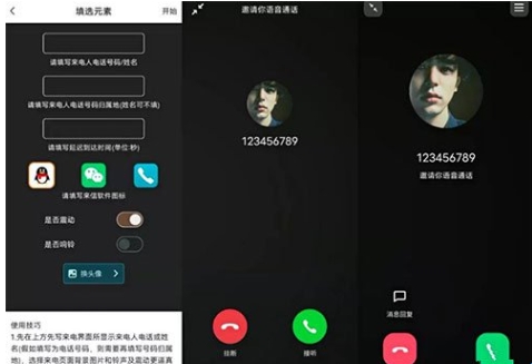 填写好号码或者名称、号码的归属地、延迟时间以及显示的图表即可模拟,也可以切换头像、更换背景等。最真实的是它还可以震动以及响铃。你可以选择拒绝也可以选择接听,但是接听之后没有声音