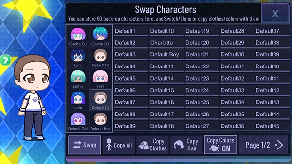 1、保存并加载多达15个场景,导入和导出朋友的角色,使用脸部预设快速更改脸部;