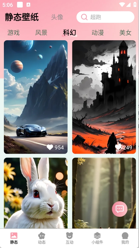 2、进入到首页之后可以看到很多的手机美化资源,包含动静态壁纸以及小组件。