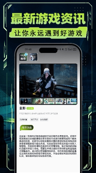 在首页浏览最新游戏资讯,如《玄影》的详细介绍,可点击进入查看游戏详情、推荐理由等信息,了解游戏亮点。