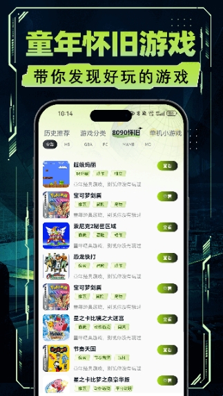 3.按童年怀旧,功能专题列表等分类,自由浏览,快速找到喜爱的游戏。