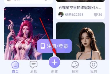 1、在首页点击下方创建