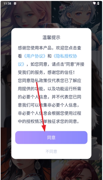 2、点击同意温馨提示