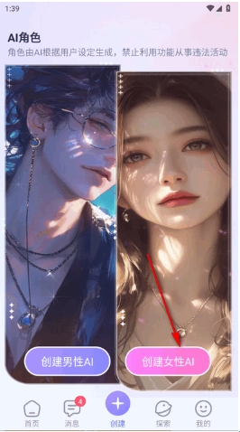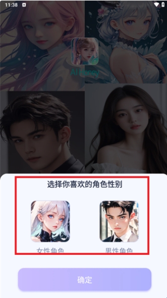 3、选择自己喜欢的ai角色性别