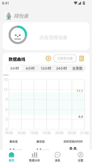 3、打开app通过手机蓝牙快速连接动态血糖仪,即可实时查看当前血糖值,血糖变化尽在掌握。