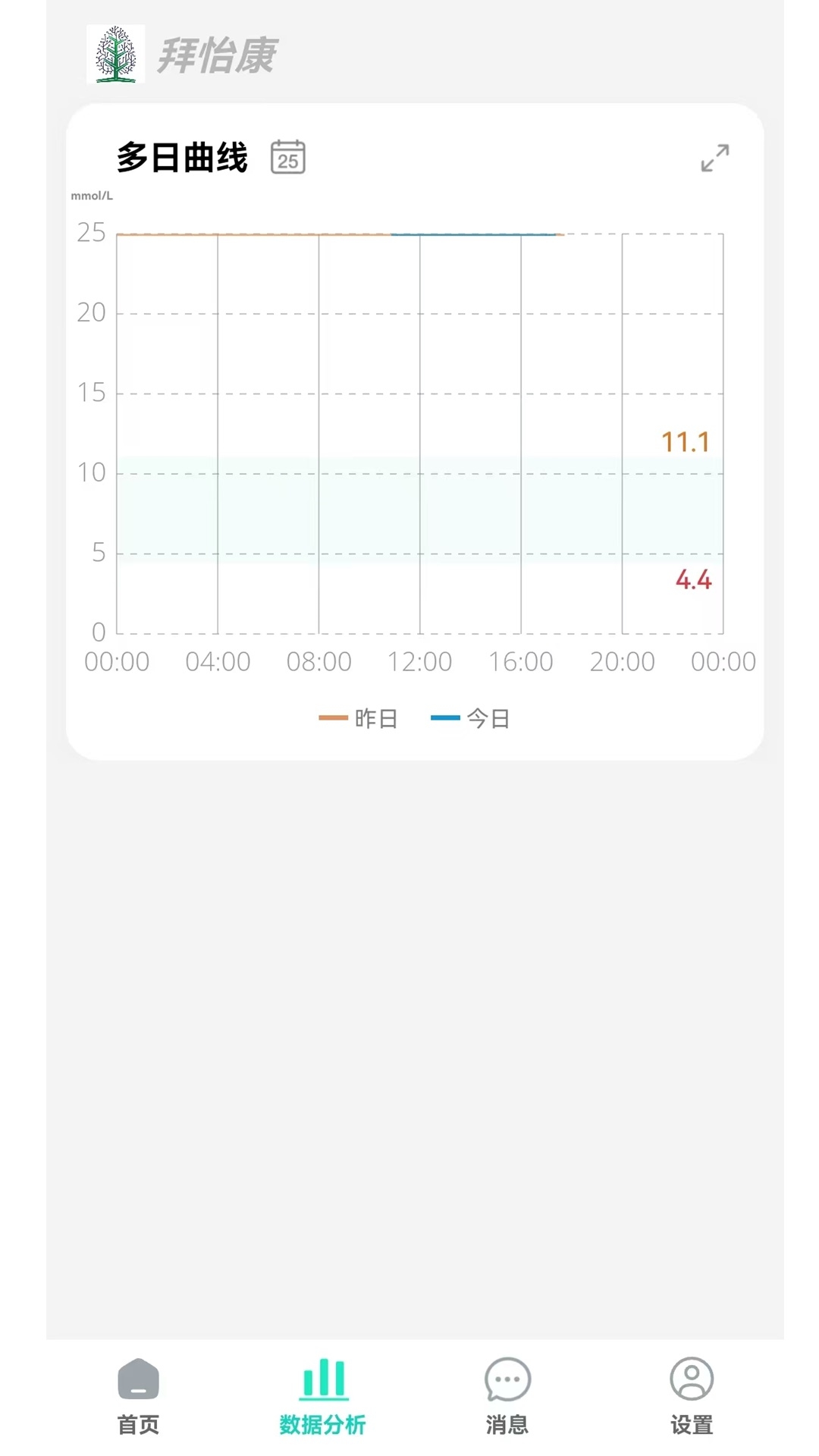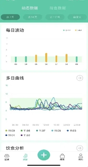 4、内置全面详细的血糖图谱,以直观的图表形式展示血糖变化趋势,帮助您深入分析血糖数据,了解身体变化。